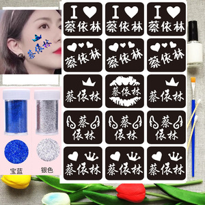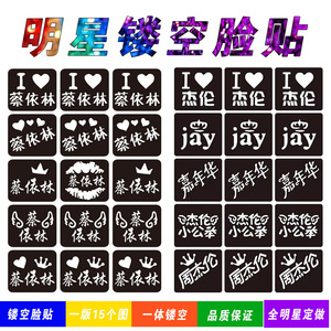 周杰倫蔡依林スターコンサートの周辺応援の透かし彫りの顔にフラッシュの粉のドリルのシールを貼って星の漫画のレーザーを追います。