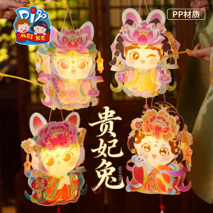 中秋節のかわいいウサギの提灯の手作りのdiy子供の製作材料は玉のウサギの花の明かりの古風の非遺留の手提げを包みます。