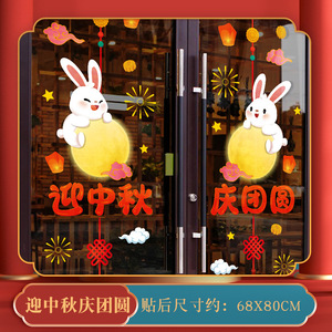 中秋節装飾静電シール祝日シーン雰囲気配置デパート店舗ショーウインドー窓ガラスドア窓花ステッカー