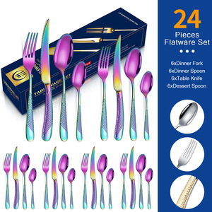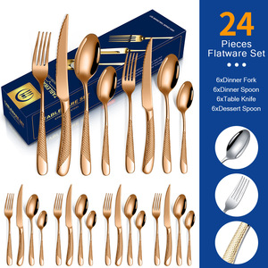 国境を越えたアマゾンの起爆ステンレス食器星ドリル金メッキ6人分24点セットプレゼントナイフフォークスプーンセット