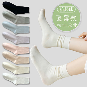白い靴下の子供の骨のない純色の中筒松口月子靴下の夏の薄いタイプの女性の靴下の通気性のストッキングは簡単です。
