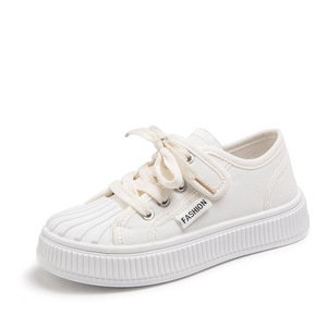 女の子用シェルトゥキャンバスシューズ、通気性のある男の子用スポーツスニーカー、2025年新作春秋子供用カジュアルホワイトシューズ、トレンド