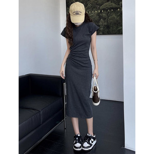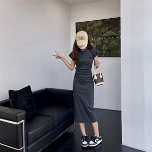 灰色のウエストギャル風修身ワンピースはだらだらしています。