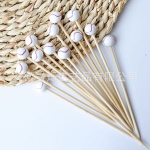 竹串を飾る使い捨て竹串木製サッカーカクテルのつまようじスナック果物のつまようじ100本入り