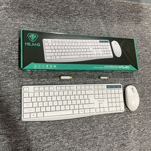 米狼W530一体型ホワイトワイヤレスキーボードマウスセットオフィス用低音ノートパソコンデスクトップパソコン越境卸売