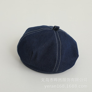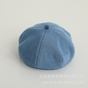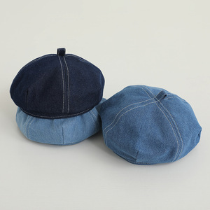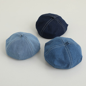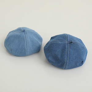 Ins韓国児童帽子潮童デニム八角形ベレー帽男女カボチャ帽赤ちゃんレジャー画家帽