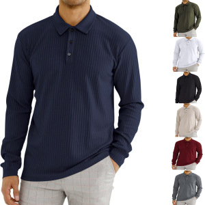 Amazon 2025 クロスボーダー秋メンズ長袖 Tシャツヨーロッパとアメリカのアンチストリップルーズラペル長袖ポロシャツ男性用