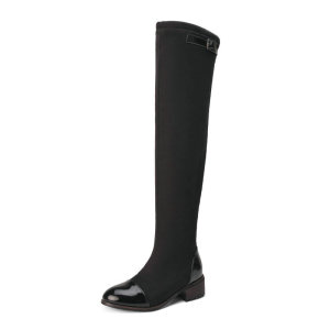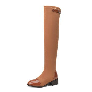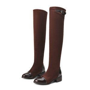 痩せていない女性ブーツ秋の冬に膝を越えたブーツの太いハイヒールの騎士靴の弾力靴にベルベットをつけた