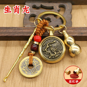 生肖の守護神は竹の節の耳のさじの5帝のお金のキーホルダーのペンダントを回転します。