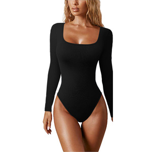 欧米風クロスボーダーレディースアマゾンカジュアルニットボディコントップス無地長袖タイトワンピース高伸縮性スリムフィット