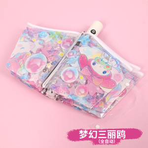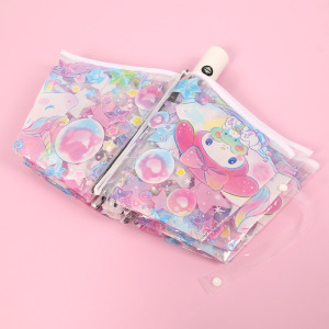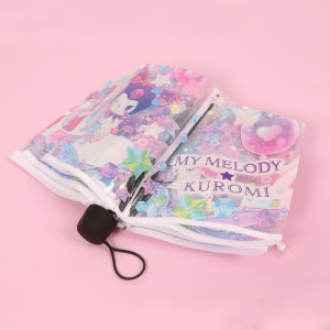 透明な傘の漫画のサンリオの夢幻の学生の女性は傘の晴れた傘で傘を撮影して折り畳みます。