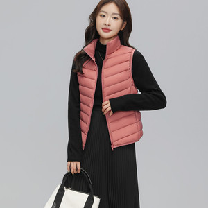 軽量ダウンベスト レディース 2025年秋冬新作 90%ホワイトダックダウン キャンバスベスト 韓国風 スタンドカラー ショート丈ベスト トレンド
