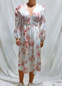 ボヘミアン風欧米の新型春秋深vプリント高腰カジュアル長袖中ロングワンピース女性
