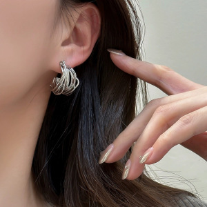 銀色多層cリングイヤリング-真金メッキ-925銀針A-388