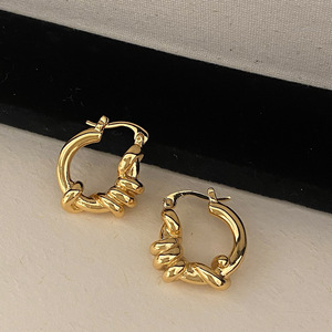水滴金属伸線金色イヤリング-925銀針-真金メッキA-686伸線