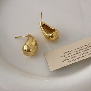金色の水滴イヤリング-925銀針-真金メッキA-686