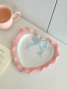 かわいい波の辺の蝶結びの愛の陶磁器のレースの食器の少女の心の家庭の茶碗の皿のドーパミンの食器