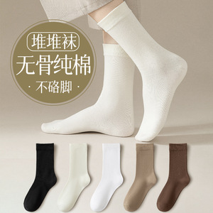 靴下レディース秋冬中筒純綿無骨月子靴下吸汗通気純色日系松口スタッキングストッキング