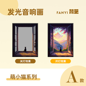 七夕の贈り物 ライトと音響付きの絵画 モダンでシンプルな漫画風風景 恋愛記念装飾画 可愛い子猫の絵画