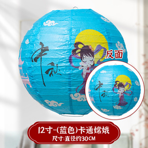 12inch プリントランタン - 月を見る中秋節 (レイクブルー)