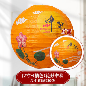 12inch プリントランタン - 中秋節の花 (オレンジ)