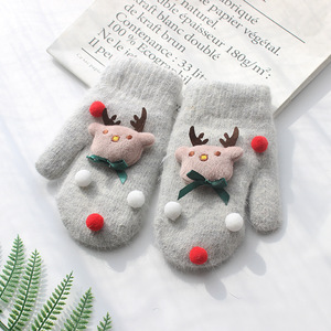 新しい秋冬のクリスマスの手袋の女性の厚い保温の毛糸の手袋の屋外の子供のかわいいニットの指の手袋