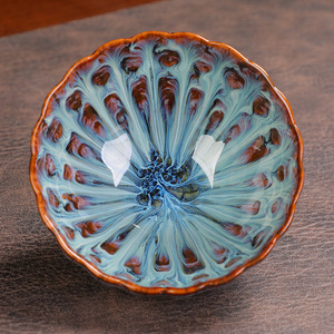 窯変青・孔雀開屏主カップ直径10cm高さ5cm容量120ml