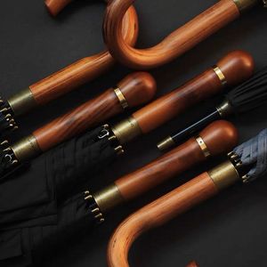 男性の長い柄の英倫紳士のレトロな木の柄は丈夫で風に強いです。