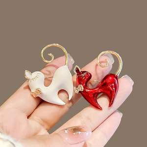 巻き尾の子猫のブローチが可愛いです。