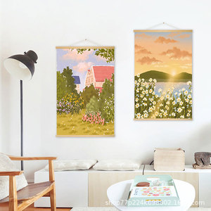 北欧小清新掛布画植物花卉客間ソファー背景壁花びら少女心寝室ベッド掛け絵