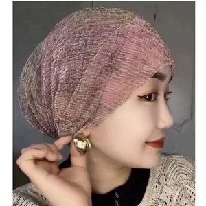 新商品の網紗のしわの包みの頭の帽子の爆発の山の帽子の秋の薄い金のお母さんの帽子は髪の帽子のレースの頭を遮ります。