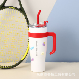 クロスボーダービッグマックグラデーション色40オンス自動車カップオフィス屋外ハンドルストローカップ保温保冷アイスカップ