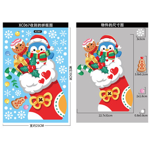 クリスマスデコレーションスノーフレークステッカーサンタクロースヘラジカ雪だるまガーランド静電ステッカートランスボーダーメリークリスマスウィンドウステッカー