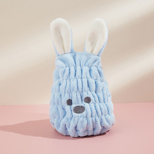シャワーキャップ子供用ヘアタオル包頭ヘアドライタオル女性かわいい漫画ウサギの耳強力な吸水速乾ヘアドライキャップ