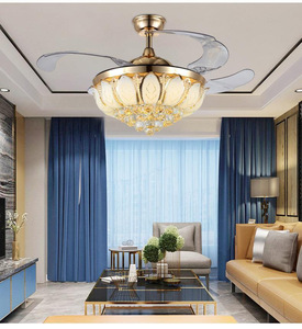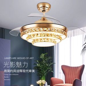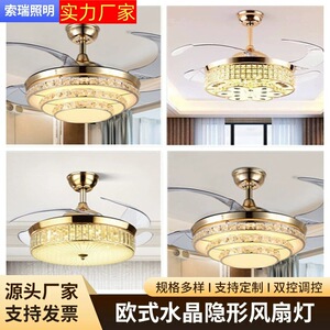 ヨーロッパ式ステルス水晶ファンランプアメリカ式レストランは一体の吊り扇ランプを吸い込みます。