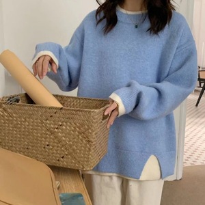 丸首のニットのコートの女性の秋冬の新型はゆったりしていて、やせています。