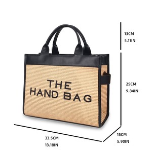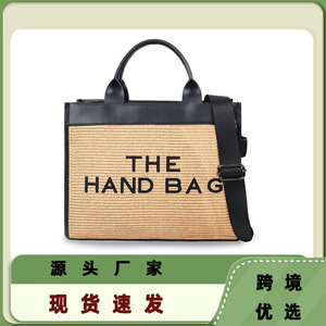 夏新品ビジネス通勤トートバッグ大容量アルファベットハンドバッグ草編み筋目レディースショルダーバッグ