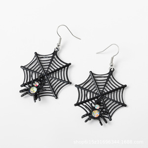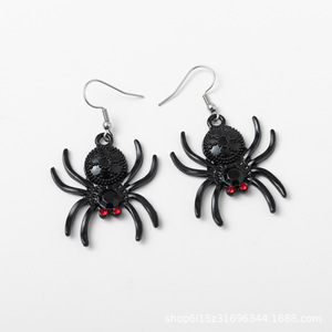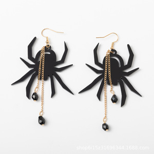 国境を越えた欧米のハロウィーンで爆発した黒いクモのイヤリングは、人体の骨格コウモリの女性のイヤリングを誇張している
