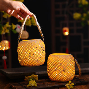 中秋節の中国風手提げ竹製提灯、古風写真撮影用、子供用漢服手持ち編み発光花灯
