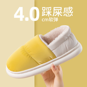 綿のスリッパの女性の冬の新型の室内の家庭用の防水の厚い底の滑り止めのカップルの保温は綿の靴の女性の金を包みます。