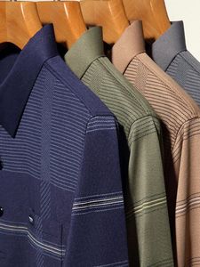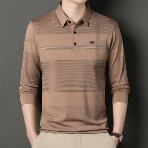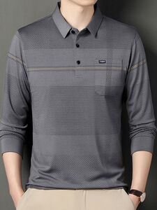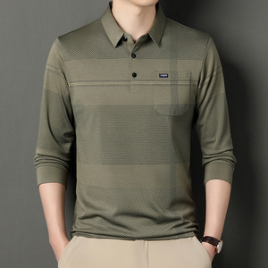お父さんは秋の新型を着て長袖のtシャツを持ちます。