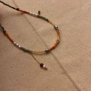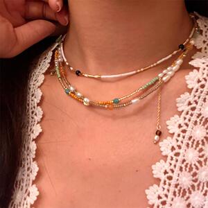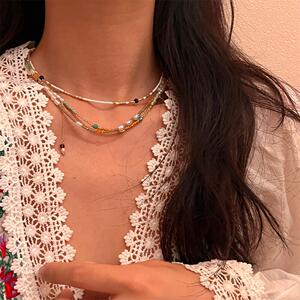 小さな米の玉の鎖のカラーの数珠の天然石の真珠の復古のネックレスの個性の流行の小さい大衆の設計感は重ねてつけます。