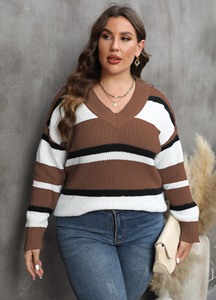 女性のプルオーバーの毛のセーターのクロスボーダーの大きいサイズの婦人服の欧米の秋冬の新型のvネックは色にぶつかってファッションのセーターの628をつなぎます。
