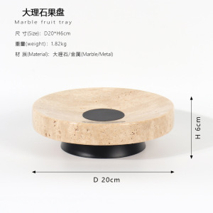 現代の極めてシンプルな黄洞石円形の果物皿創意家庭用リビングルームのテレビ棚のテーブルの収納展示トレー