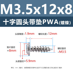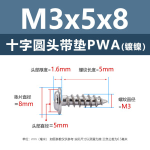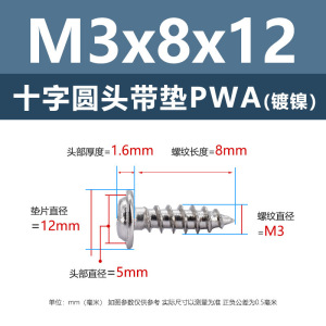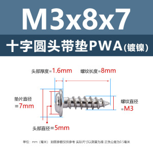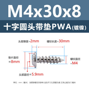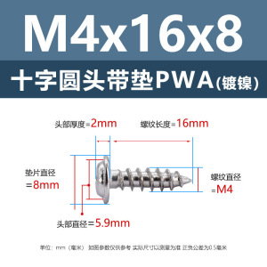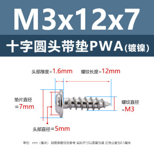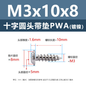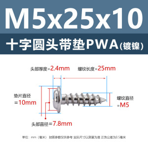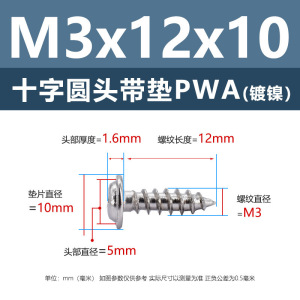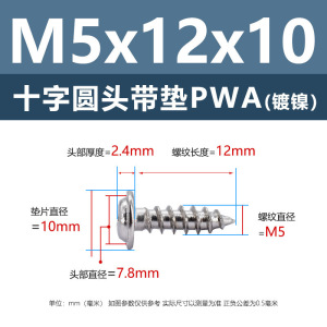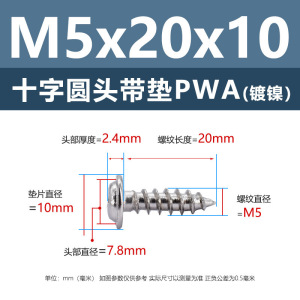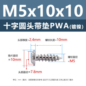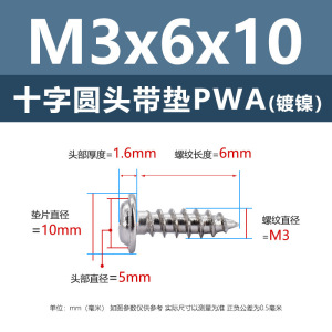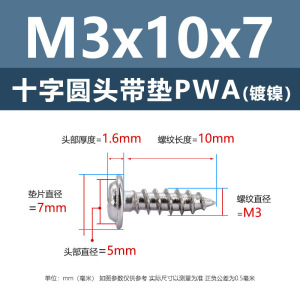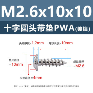 メーカー直販ニッケルメッキ十字丸頭パッキン付きタッピングねじ丸頭パッキン付き鉄タッピング盤頭介ねじ付き