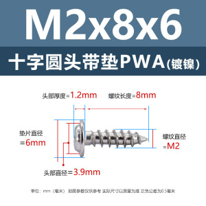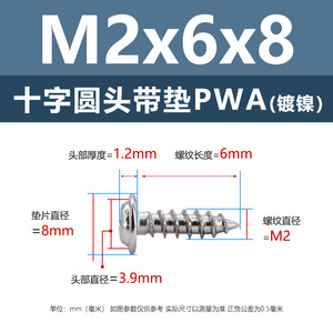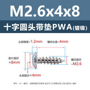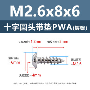 PWA2.6 * 8*6 (鉄ニッケル円頭パッド付きタッピングネジ)(200個)