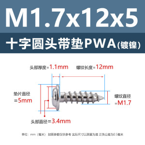 PWA1.7 * 12*5 (鉄ニッケル円頭パッド付きタッピングネジ)(500個)
