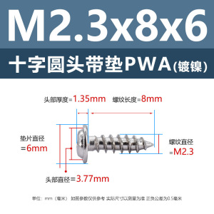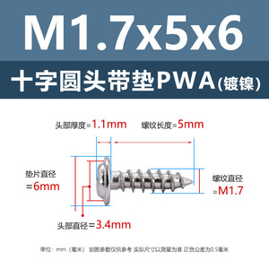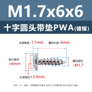 PWA1.7 * 8*6 (鉄ニッケル円頭パッド付きタッピングネジ)(500個)