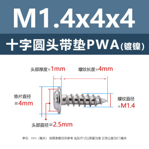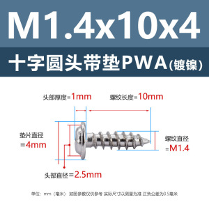 PWA1.4 * 10*4 (鉄ニッケル円頭パッド付きタッピングネジ)(500個)