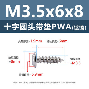 PWA3.5 * 6*8 (鉄ニッケル円頭パッド付きタッピングネジ)(200個)
